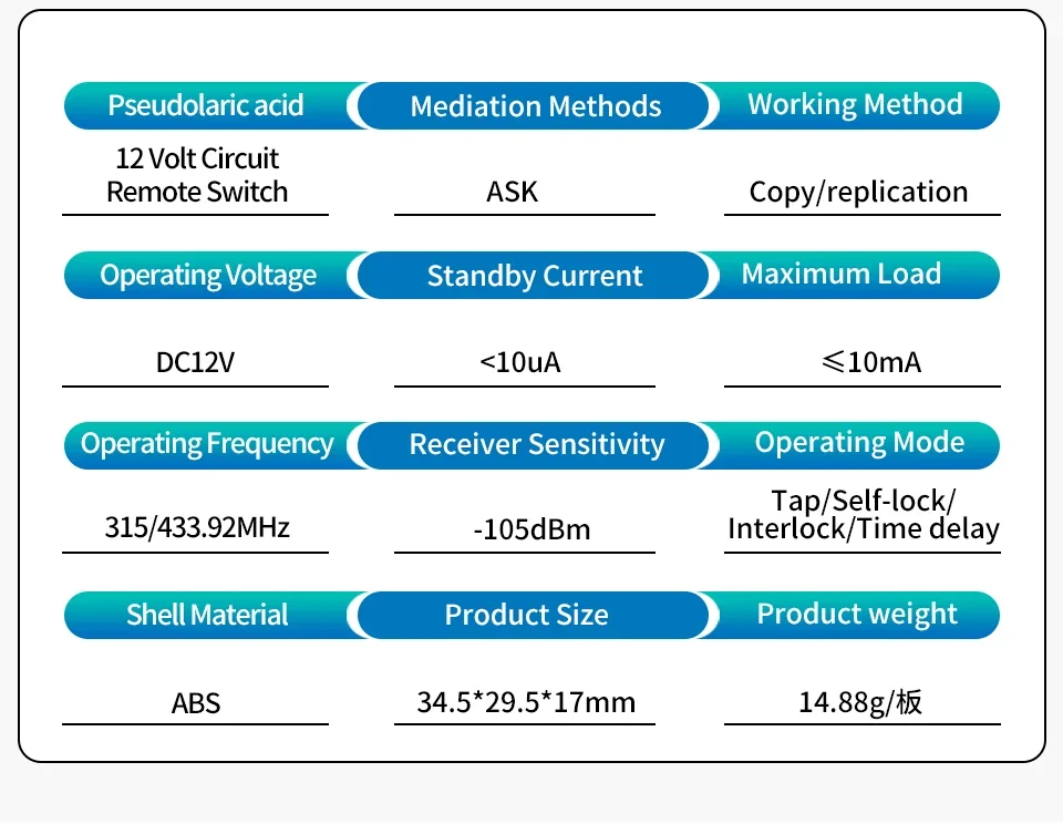 Napisz pierwszą opinię o „10A Relay Receiver Mini Module Remote Control f 433Mhz Universal Gate Remote Control Switch DC 12V or Gate LED Garage Door”