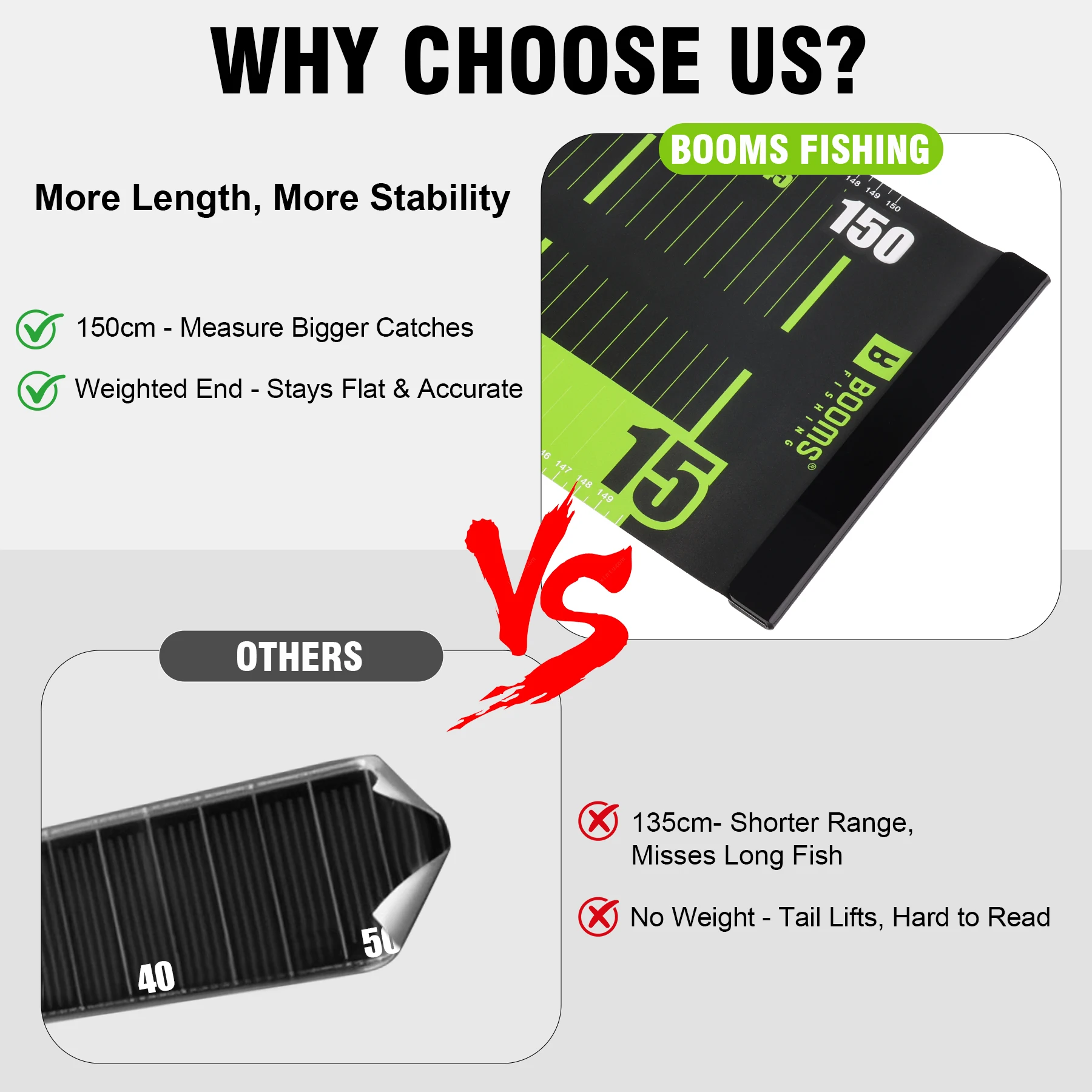 The 90° design at the stopper enables quick alignment with the fish’s mouth for simple length measurement.