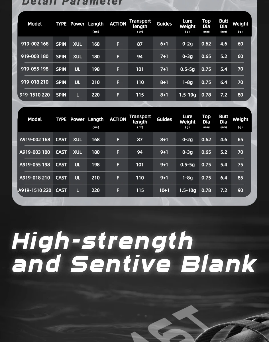 Lure weight: 0-2g/0-3g/0.5-5g/1-8g/1.5-10g