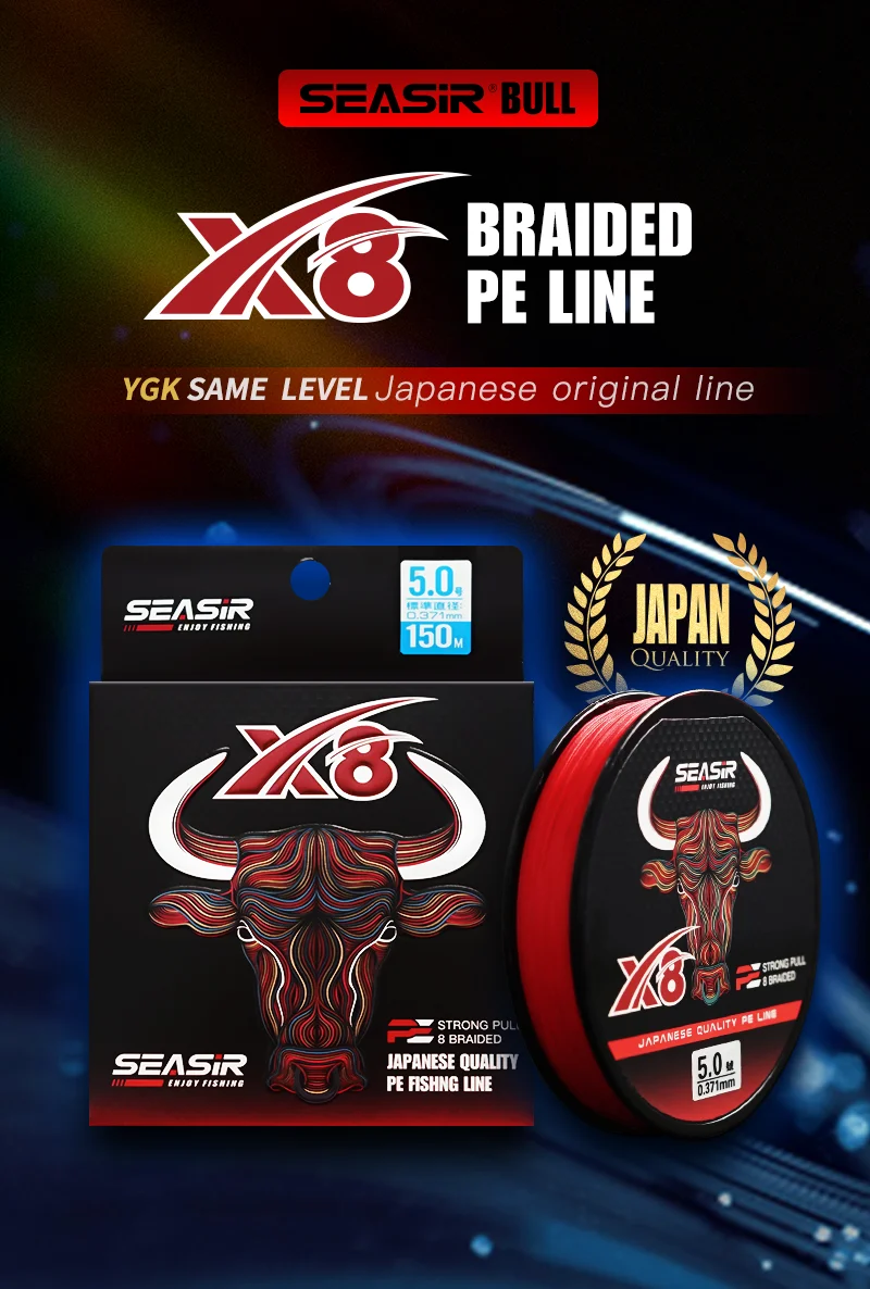 Seasir RedBull 8 Braided Pe Fishing Line 150M 0.8-5.0 12-50LB Japan Quality Multifilament High Stength Strands Main Line
